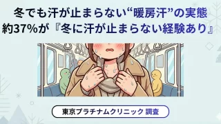 冬なのに汗が止まらない「暖房汗」は、多くの人が経験している身近な悩みです。今回の東京プラチナムクリニックの調査によって、その実態と、電車やオフィスなどの環境要因が大きく影響していることが明らかになりました。汗ジミやニオイへの不安は、日常生活における大きなストレスとなり得ます。